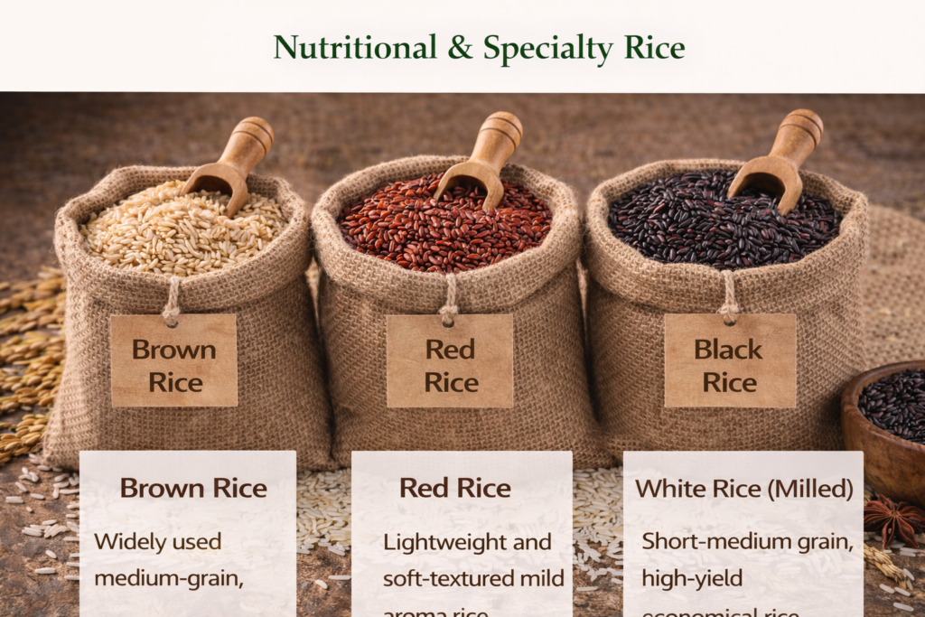 Minimally processed rice with high fiber content, preferred for health-conscious markets.