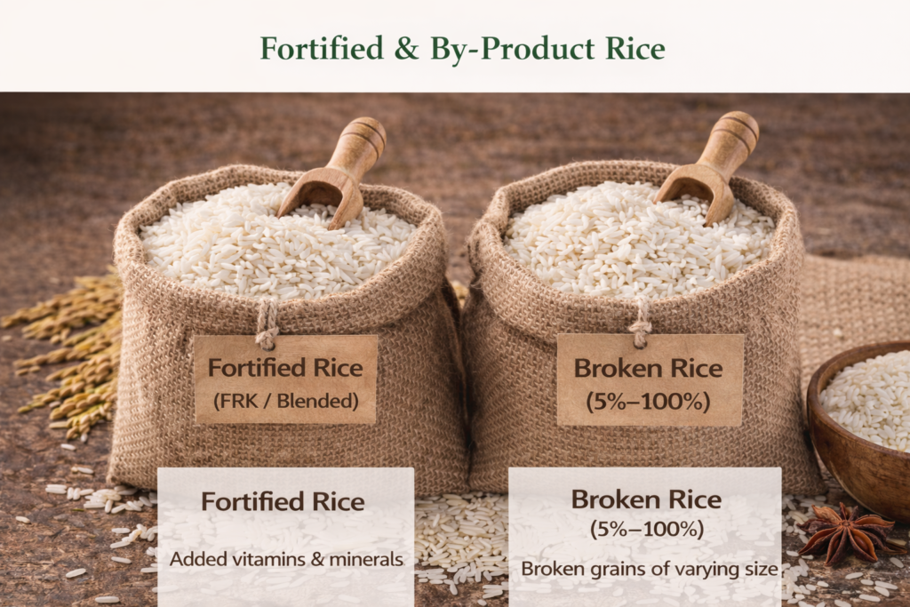 Vitamin-enriched rice used in nutrition programs and institutional supply.